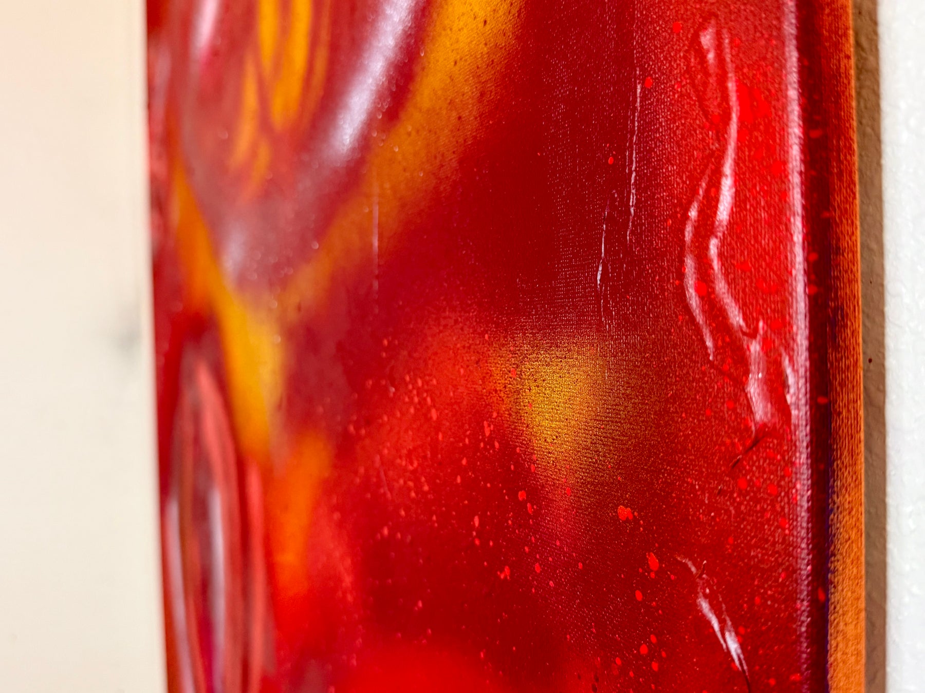 Bold, radiant, and evocative — Solar Bloom is a visual celebration of life’s intensity. This original abstract artwork fuses rich shades of crimson, fiery orange, golden yellow, and hints of magenta and violet to form organic, almost floral impressions that seem to emerge from glowing light. A piece that feels alive and ever-changing depending on how light hits it, perfect for those who crave depth and emotion in their home decor.