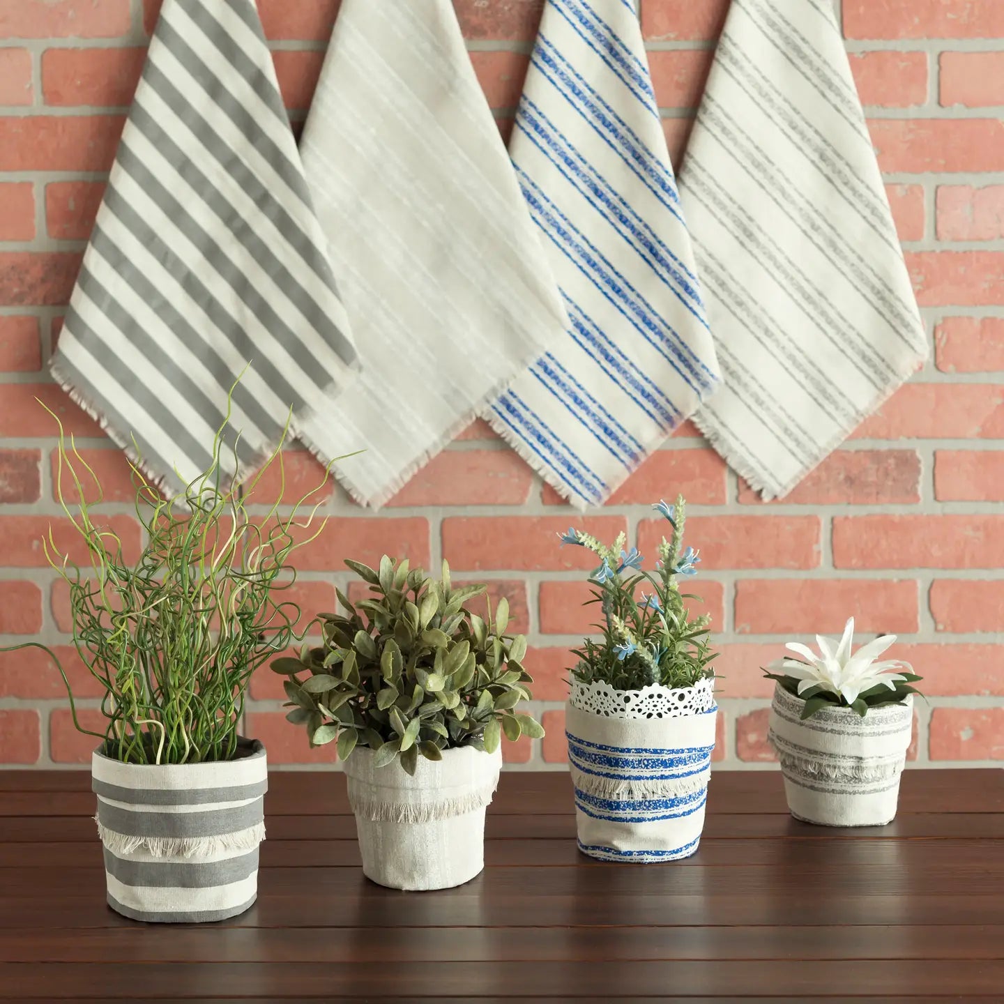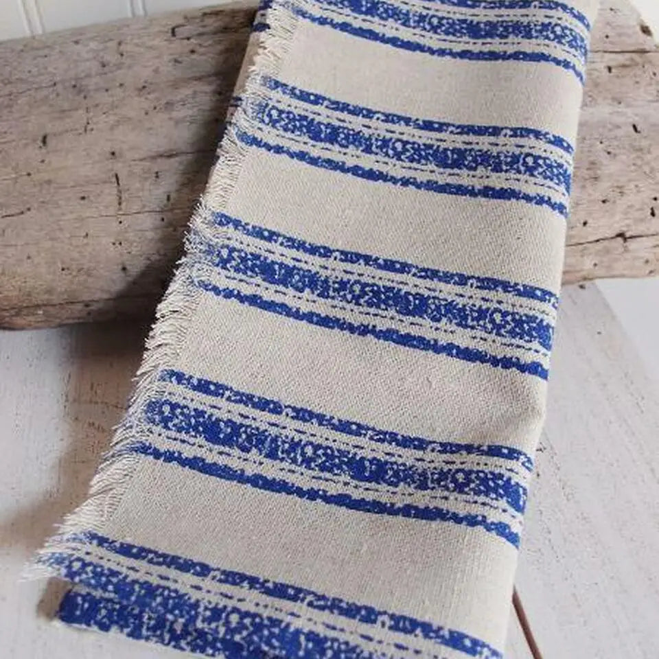 These gray linen-blend fabric squares feature bold gray stripes on one side and fringed edges on all sides, adding a soft rustic touch to any setting. Whether used as placemats, table overlays, or creative wrapping, these squares bring style and function together.