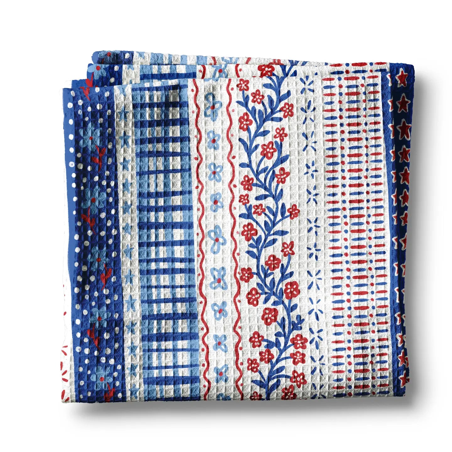 The raised looped edges on this lint free towel make it great for all around use, while also being great on glass. fourth july, patriotic, memorial day, stars stripes, red white and blue, flag America USA preppy floral