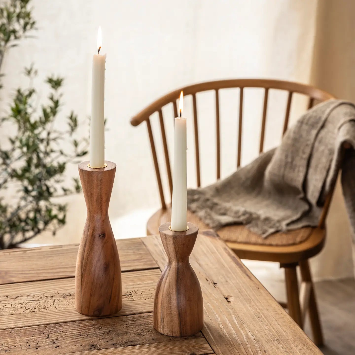 Inspired by the quiet beauty of intentional living, this duo of hand-carved candle holders brings warmth, simplicity, and graceful form to any space. Made from solid acacia wood with a natural finish, each piece features a sculptural silhouette reminiscent of mid-century curves and artisanal balance.